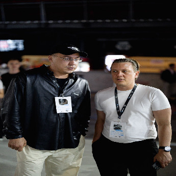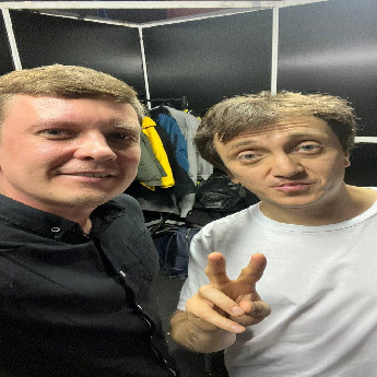Продюсер Денис Супрунов и актер Денис Дорохов за кулисами съемок шоу «Однажды в России» на ТНТ