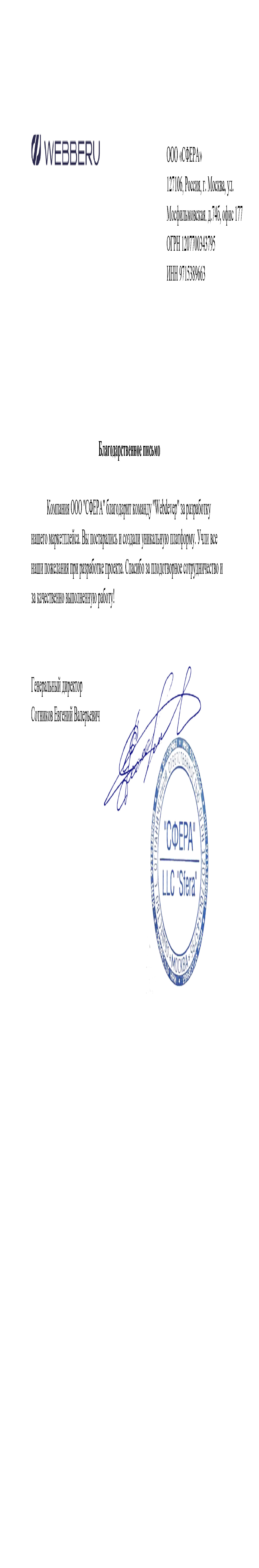 Компания ООО "СФЕРА" благодарит команду WebDevep за разработку нашего маркетплейса. Вы постарались и создали уникальнуую платформу. Учли все наши пожелания при разработке проекта. Спасибо за плодотворное сотрудничество и за качественно выполненную работу!
