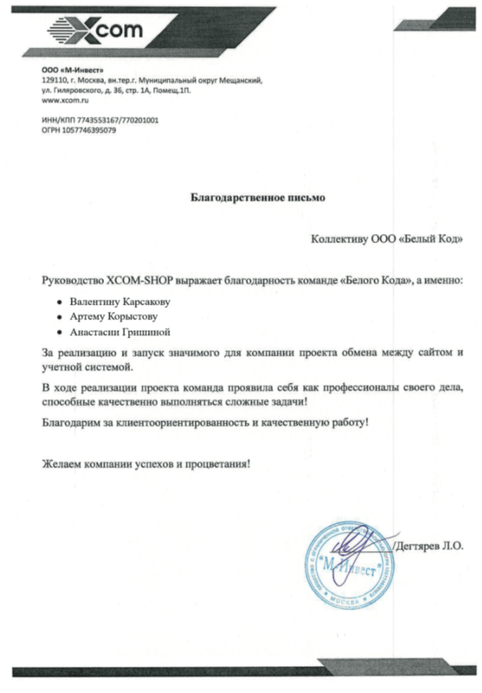 Руководство XCOM-SHOP выражает благодарность команде «Белого Кода», а именно: