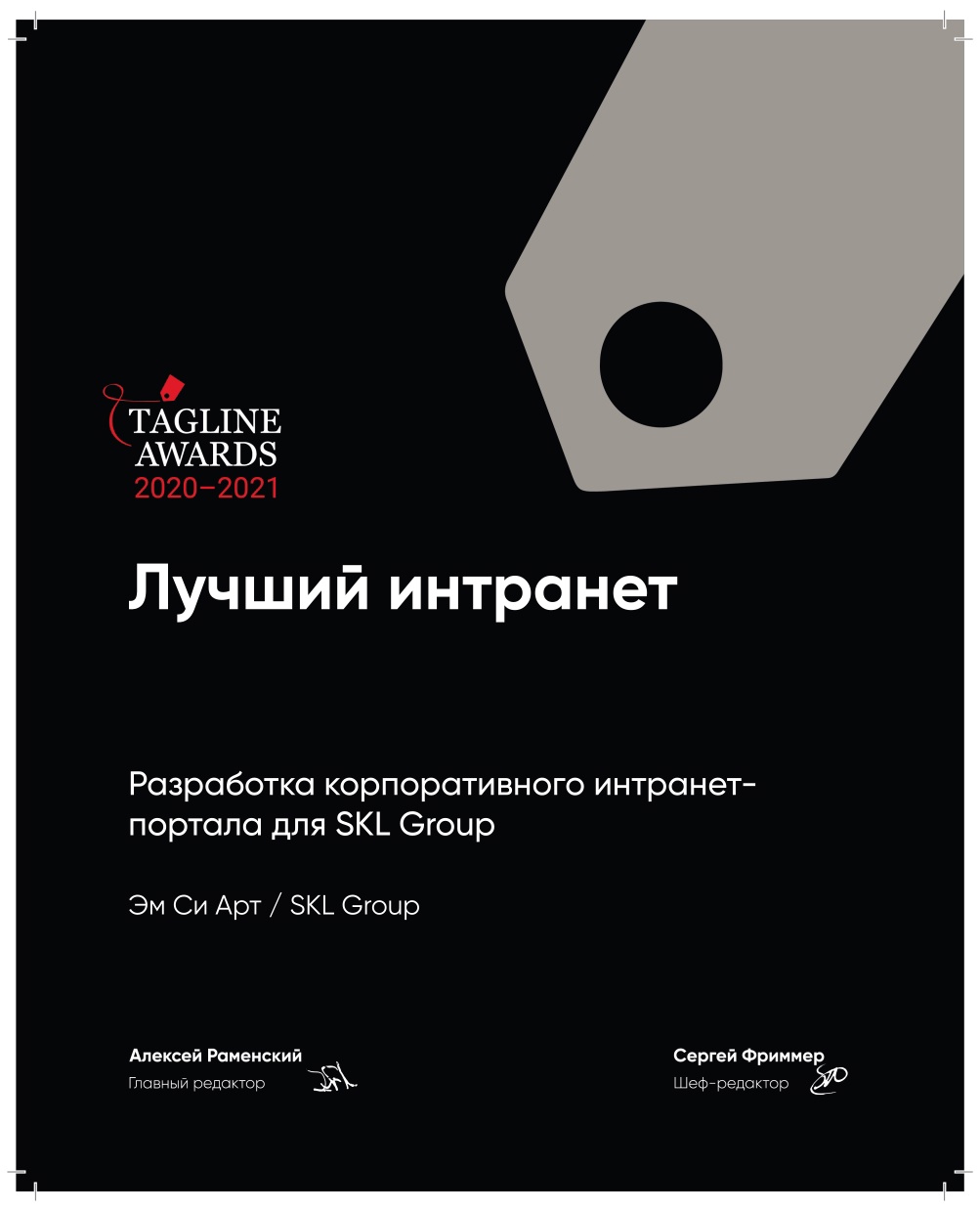 - Серебро в номинации «Лучший интранет» на Tagline Awards 2020–2021,