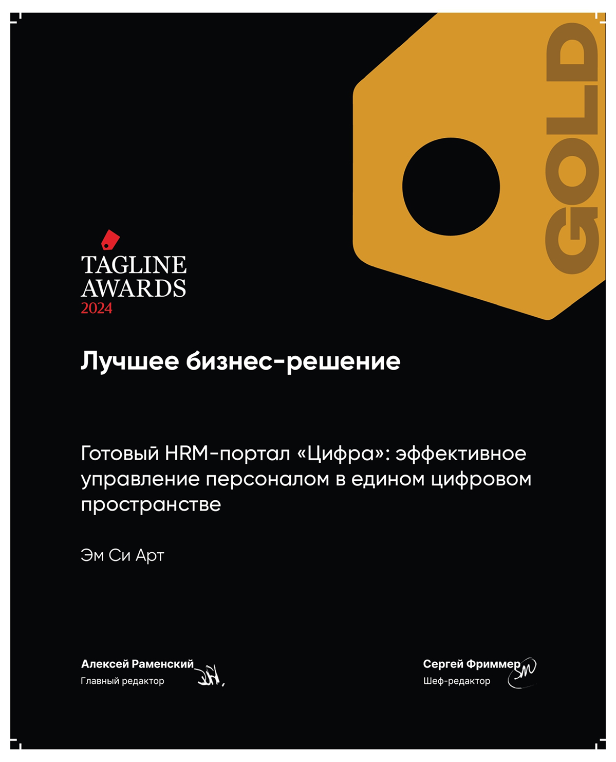 HRM-портал «Цифра» — лучшее бизнес-решение 2024 года по версии Tagline Awards