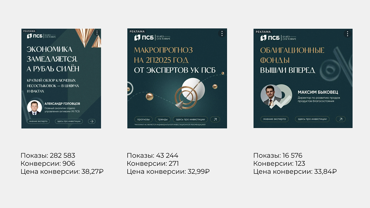 Менее эффективными были публикации с ограниченной практической пользой, что подтвердило: инвестиционная аудитория предпочитает конкретику и экспертность.
