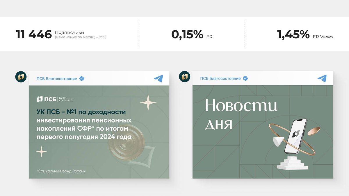 Когда мы начали работать с Telegram-каналом ПСБ Благосостояние, ключевая цель состояла в том, чтобы повысить вовлечённость и превратить канал в коммуникационную площадку для инвесторов.