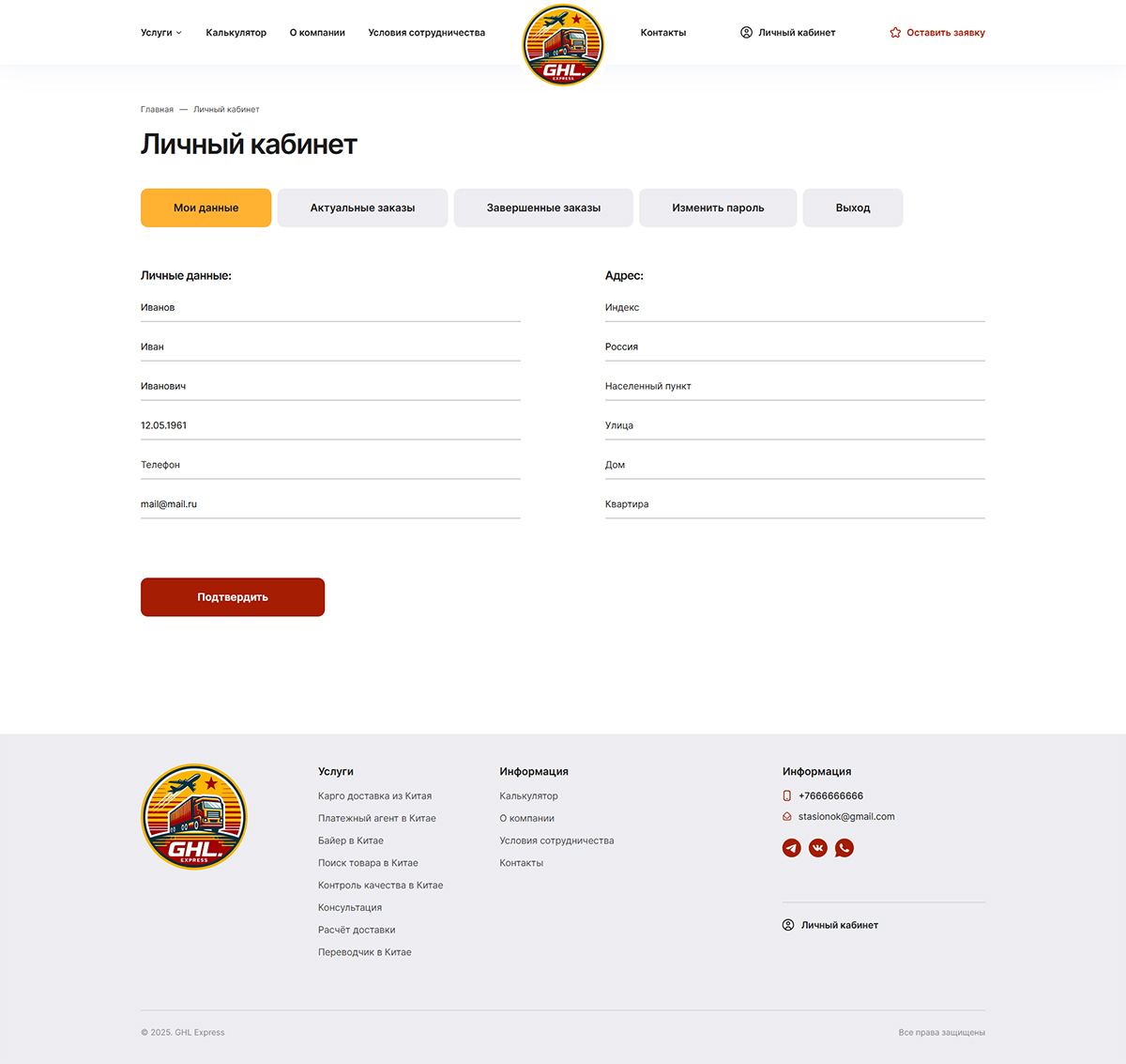 GHL Express: цифровой сервис доставки из Китая с калькулятором и кабинетом клиента