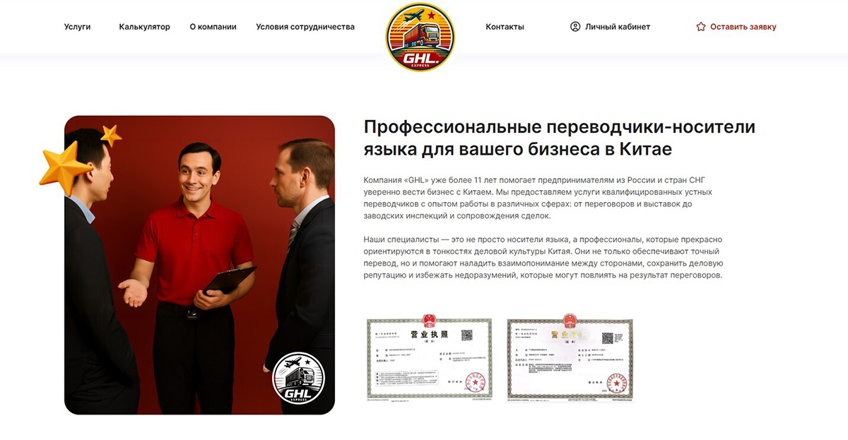 Когда к нам обратились основатели нового направления GHLExpress, их запрос был одновременно простым и комплексным: создать с нуля цифровое представительство для бизнеса по доставке товаров из Китая. У компании не было ни сайта, ни готового контента — лишь четкое видение услуг и понимание целевой аудитории: предприниматели, ритейлеры и стартапы, которые хотят работать с китайскими поставщиками, но сталкиваются со сложностями логистики, платежей и контроля.