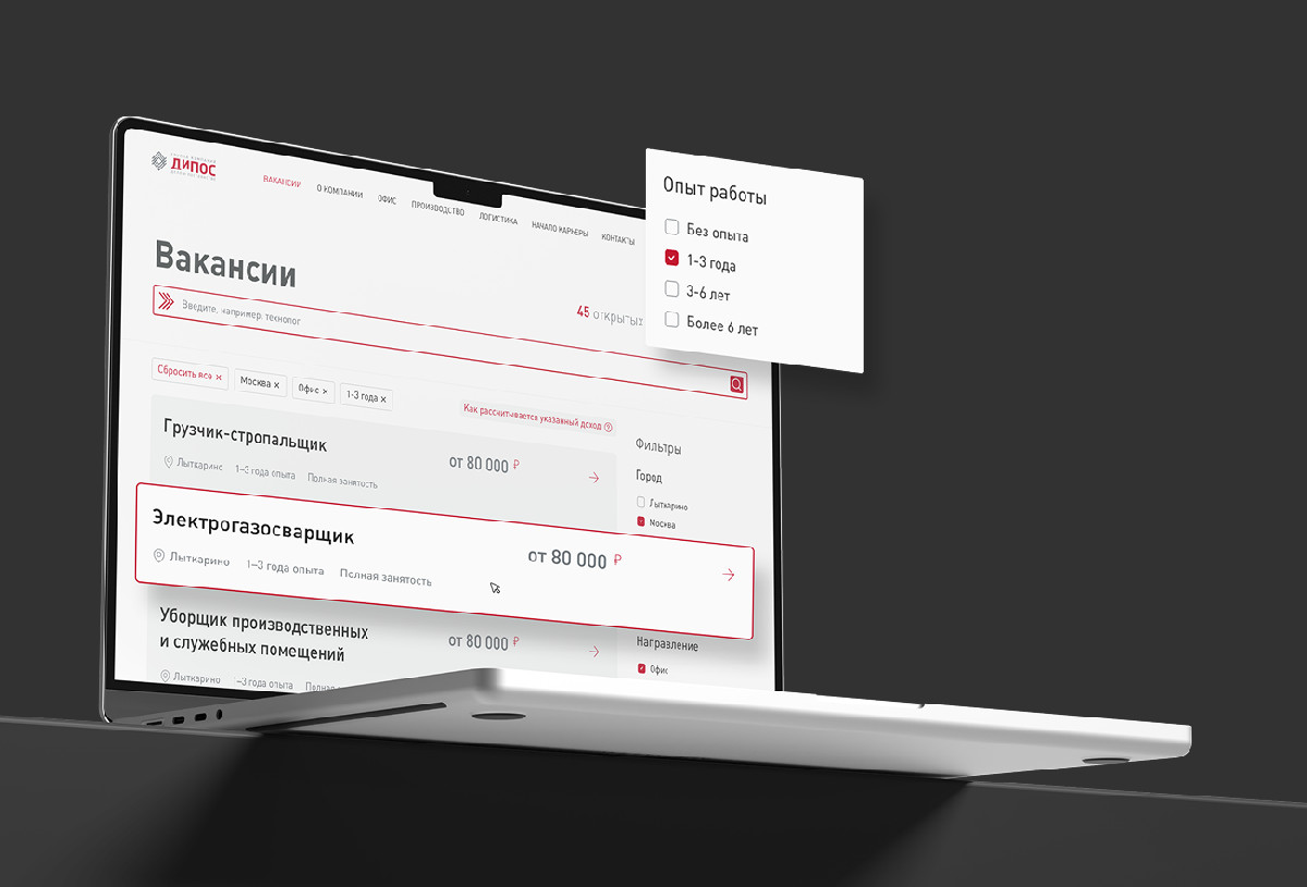 Карьерный сайт для промышленной компании "ДиПОС"