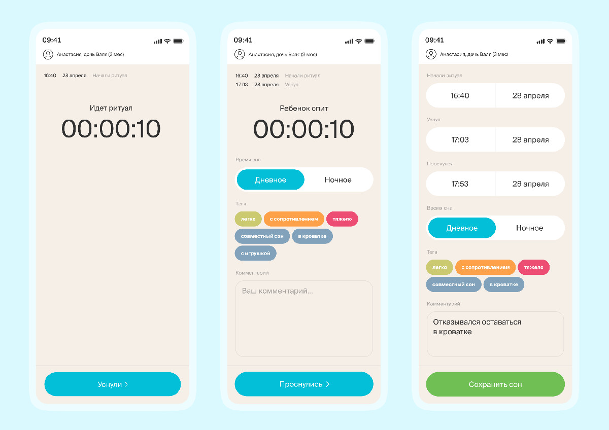 Родителям приходилось вести «бухгалтерию сна» вручную в таблицах или заметках. Это неудобно, особенно ночью. Целевая аудитория — уставшие родители, у которых нет ресурса разбираться в сложных интерфейсах.