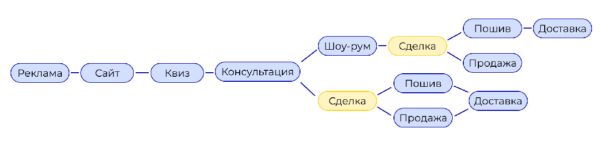 Далее приступили к изучению действующей воронки продаж, чтобы понять насколько эффективно через нее проходит трафик с Яндекс Директ.