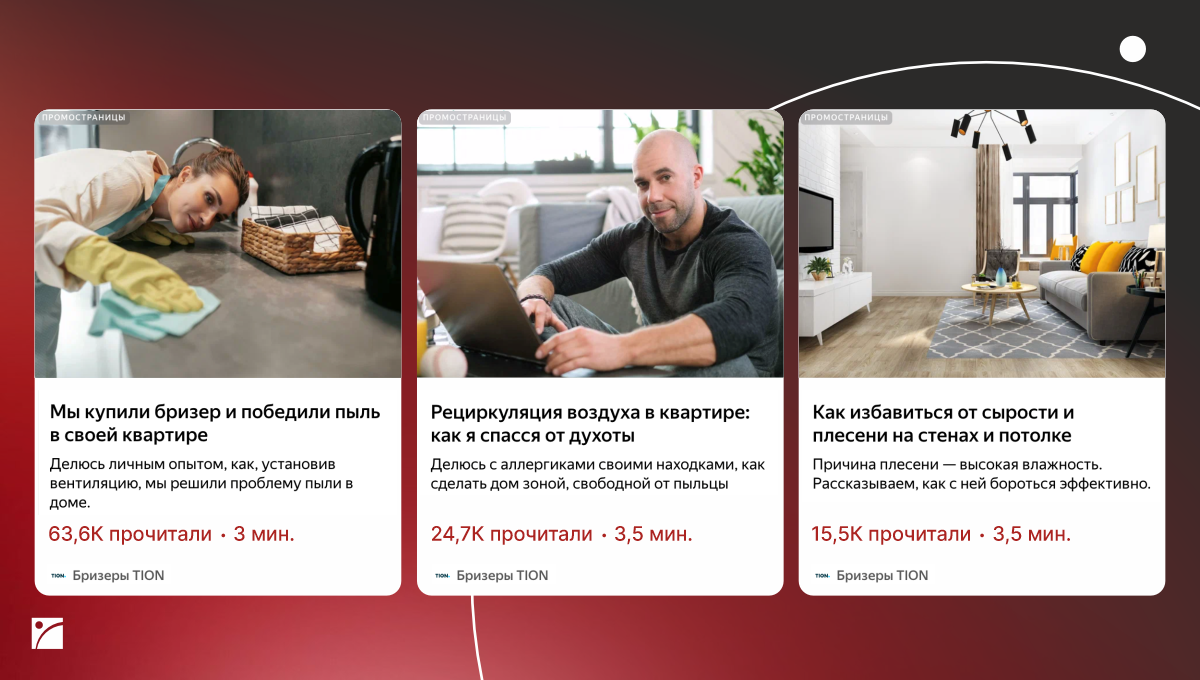 Главное достижение — формирование знания о продукте у широкой аудитории. Благодаря ПромоСтраницам происходит первое касание с людьми, у которых есть потребность в чистом воздухе, но нет понимания, как эту проблему решить технологично. После прочтения статьи аудитория понимает ценность предложения и больше доверяет бренду ТИОН как эксперту в области микроклимата.