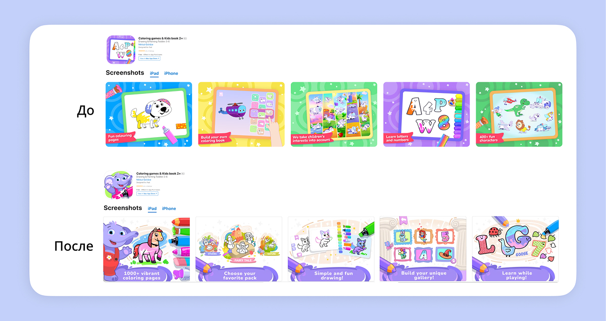 Категория детских приложений в App Store — одна из самых сложных для продвижения, потому на рынке уже есть много «гигантов», которые получают большую часть установок. Рассказываем, как помогли команде приложения с раскрасками Tinty.