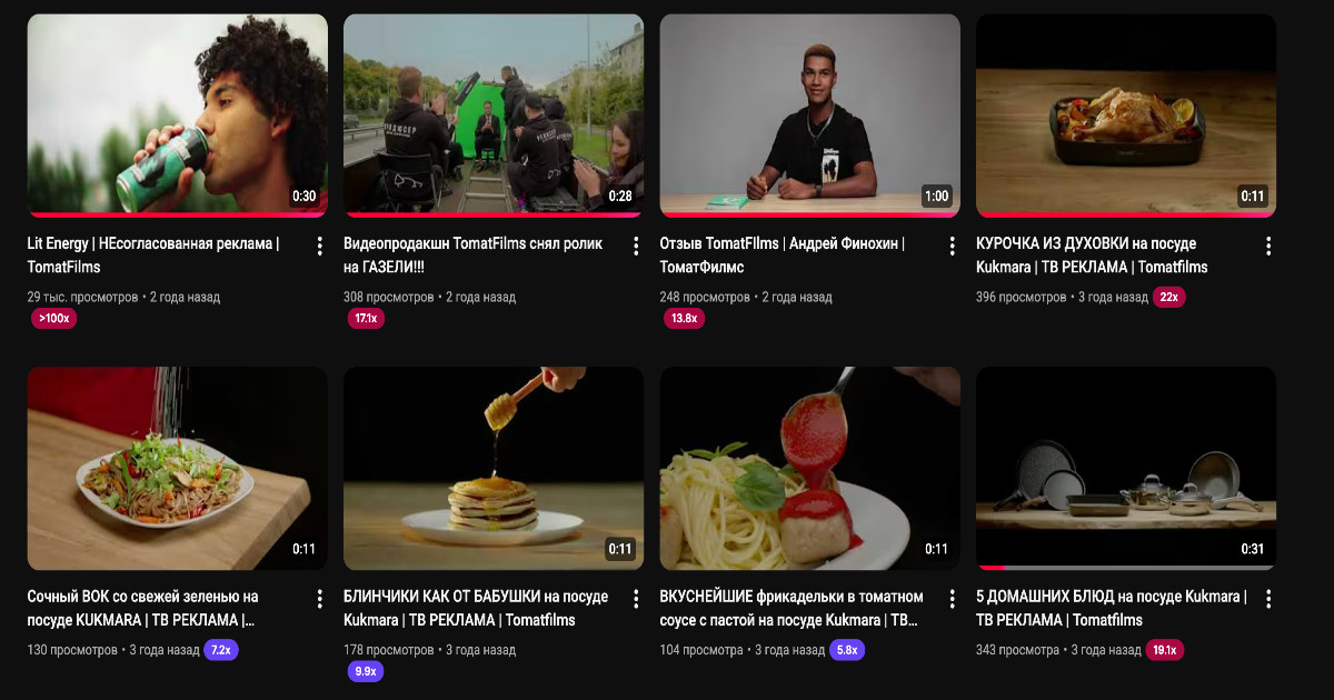 Томат Фильм разработала и реализовала серию рекламных ТВ-видеороликов для производителя посуды Kukmara. Команда выполнила полный цикл производства: разработку идеи, сценария, организацию съемок и постпродакшн. Все 5 видео 3 месяца крутились по Россия 1, вовлекая зрителя в историю приготовления блюд