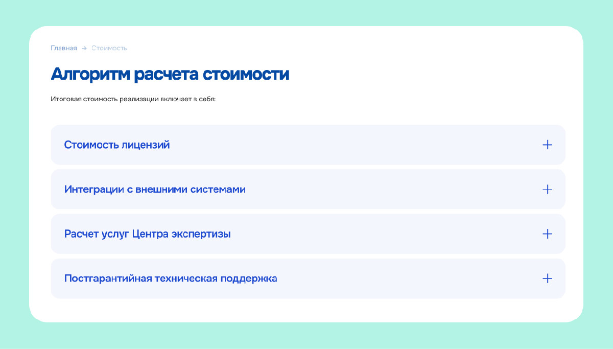 Мы отказались от «простыней» текста. Описание продуктов, информацию о компании и стоимость мы разбили на аккуратные карточки, добавили красочные иллюстрации и разделили контент на смысловые блоки. Посетитель читает только то, что ему нужно, не продираясь сквозь термины.