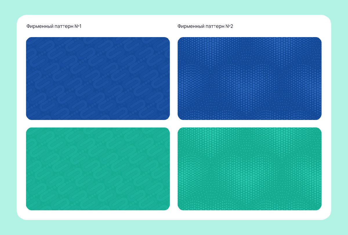 - Разработали фирменные паттерны. Первый — плавные изогнутые линии (метафора биоритмов). Второй — сетка упорядоченных точек с эффектом волны.