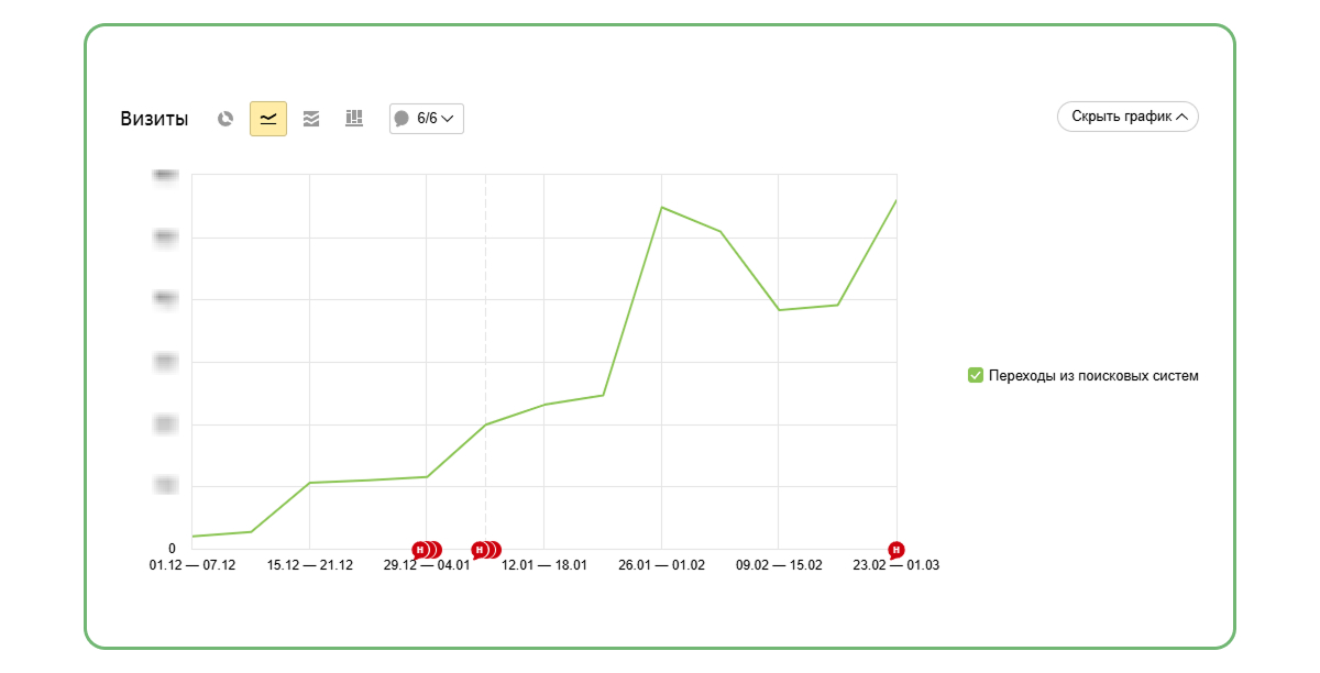 Постепенный рост трафика на новом сайте