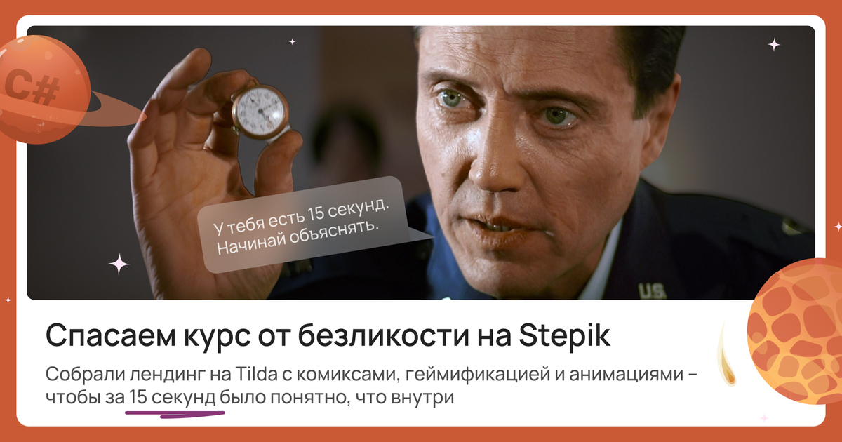 У курса по программированию не было сайта. Продавали на Stepik и через группу в ВК, но хотели масштабироваться. За 1.5 месяца собрали лендинг в космической комикс-стилистике с авторскими иллюстрациями и усилили преимущества курса. В этом кейсе – разбор дизайн- и UX-решений.
