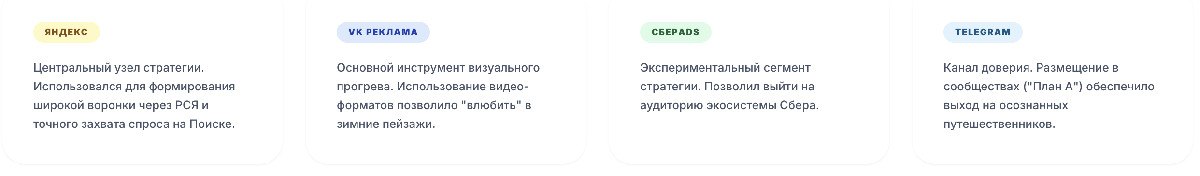 "В Telegram мы зашли позже, но он отлично сработал на прогрев к Белокурихе. Это был один из самых прозрачных каналов по росту WordStat."