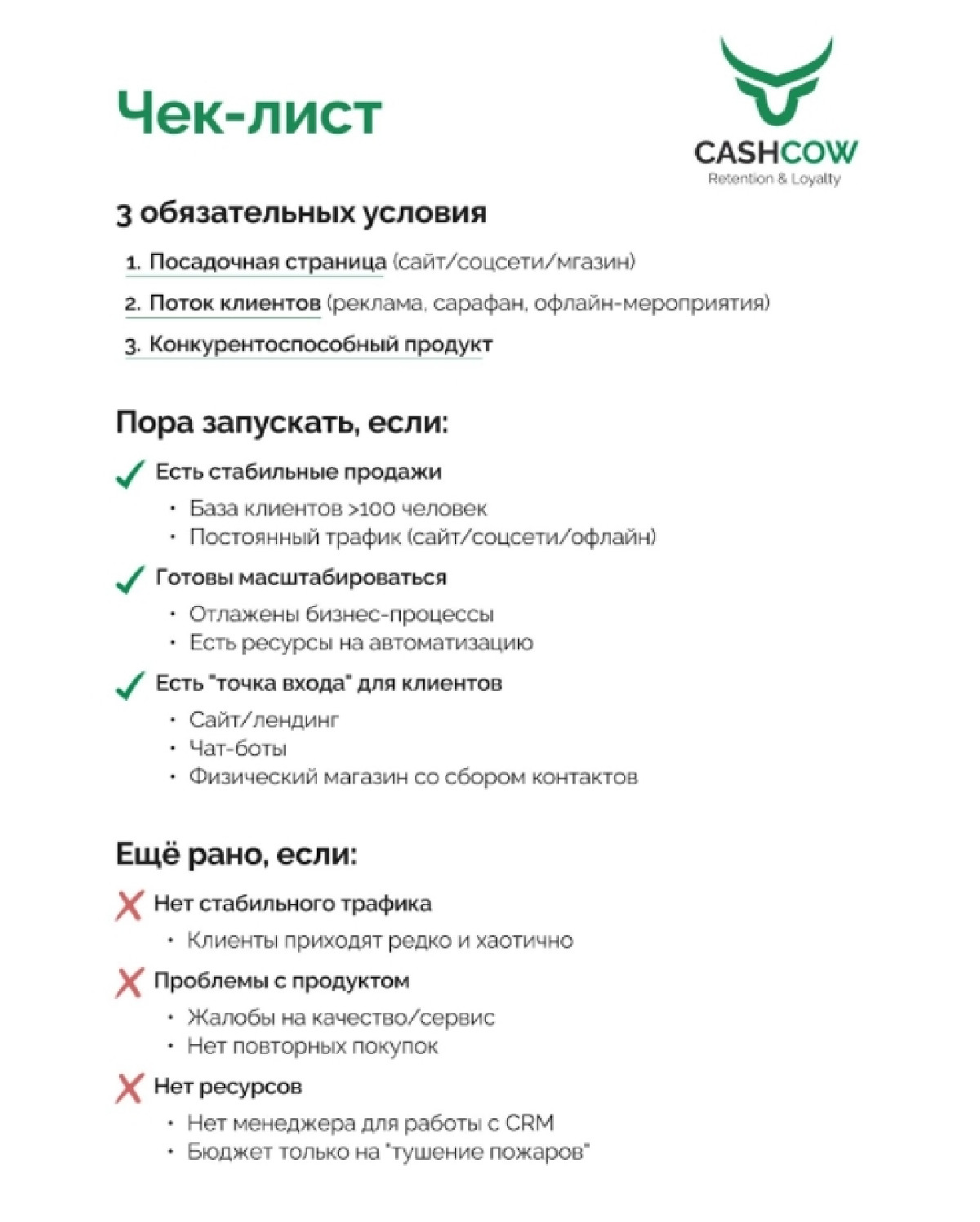 №1. Чек-лист «Когда планировать запуск СРМ-маркетинга, а когда еще рано»
