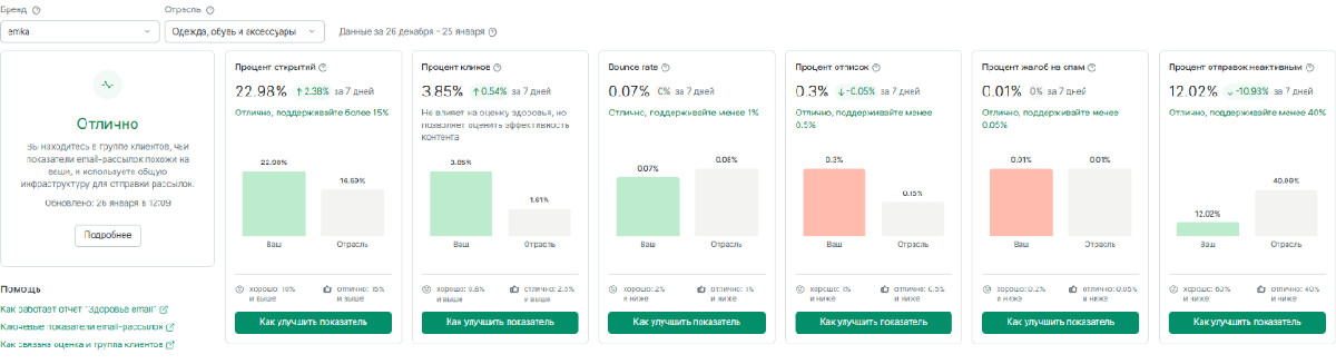Сейчас к бранде Emka всё хорошо. Мы приступили к регулярным работам: делаем массовые и триггерные рассылки через электронную почту (email-рассылки) и мобильные уведомления. Улучшаем прокси-метрики, анализируем коммуникации для выявления точек роста и развития проекта.