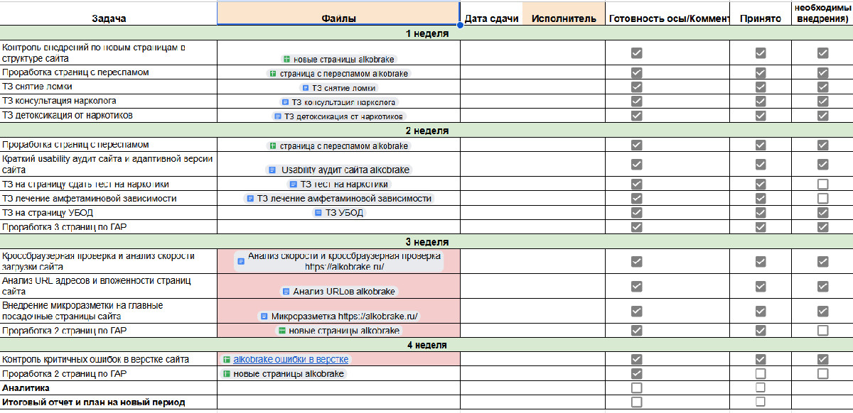 Подготовили ТЗ на новые страницы и завели процесс контроля внедрений (чтобы не терялись правки и быстрее выходили в индекс).