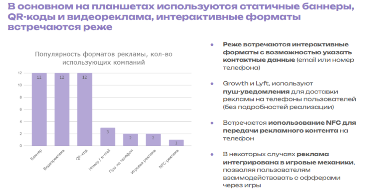 - форматы рекламы и контента;