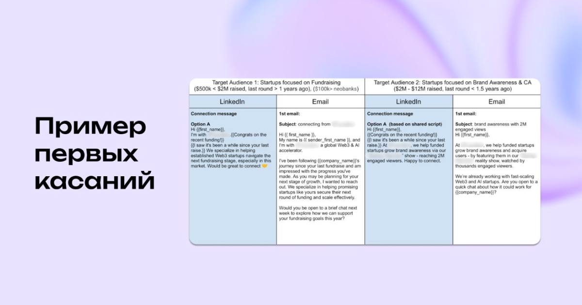 - персонализация под раунд, продукт и рынок каждого контакта;