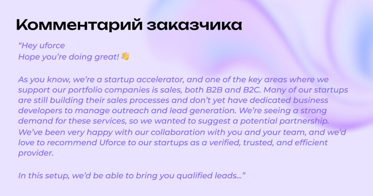Каждое сообщение персонализировалось под конкретный стартап: раунд инвестиций, стадия продукта, рынок. Вместо «привет, давай пообщаемся» — «видим ваш seed раунд на $X, есть релевантная программа». Разница в отклике между этими двумя подходами принципиальная.