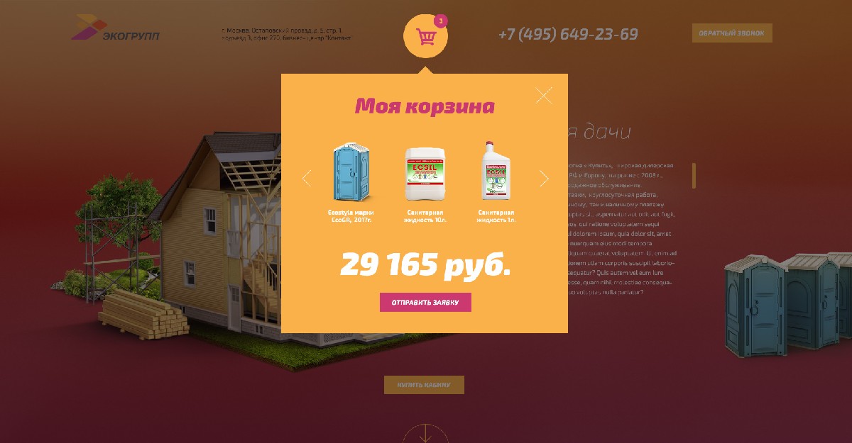 В результате работы мы получили яркий и нетипичный сайт по продаже туалетных кабин для частных лиц, с оригинальными иллюстрациями графикой и motion дизайном.