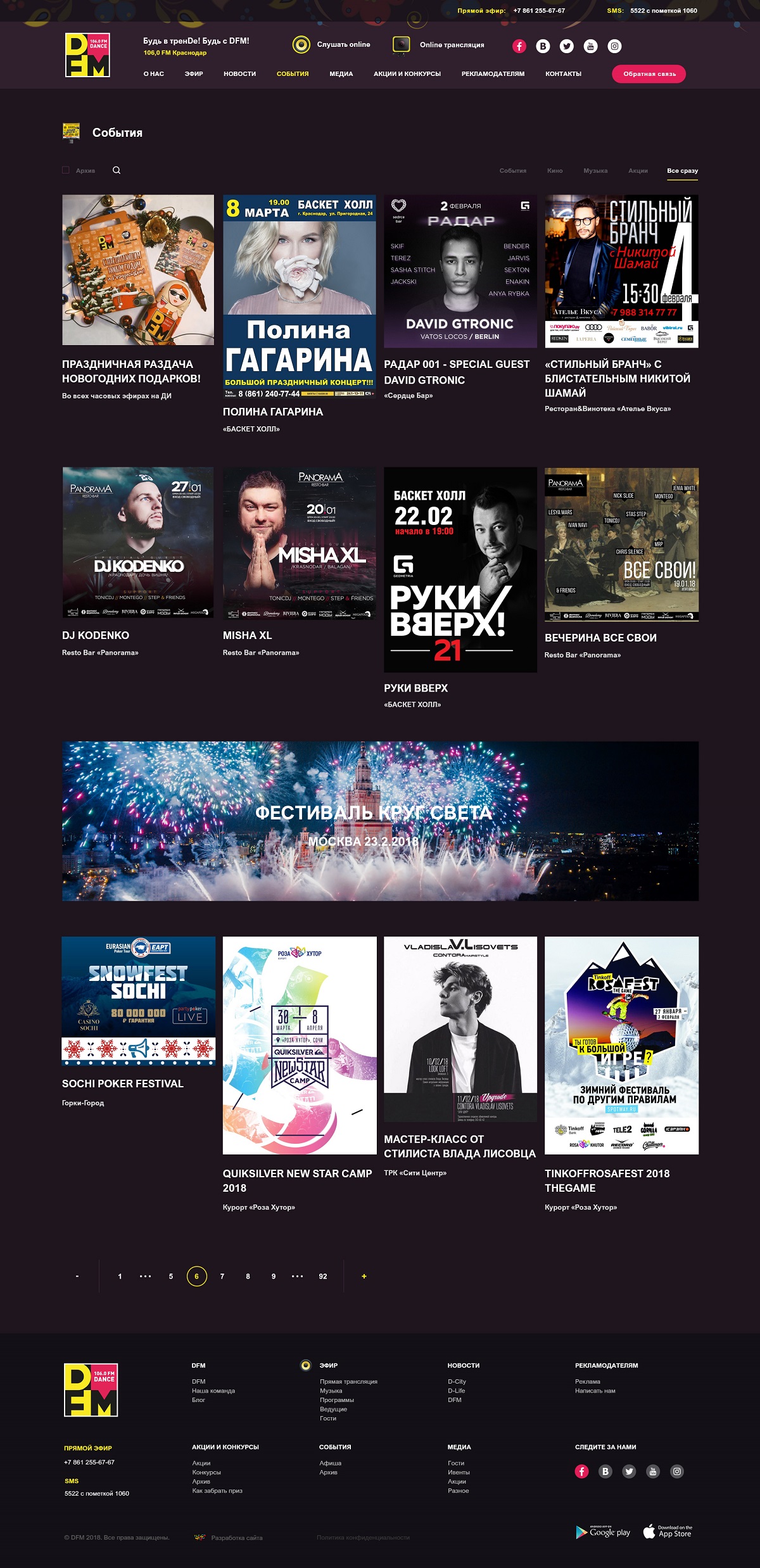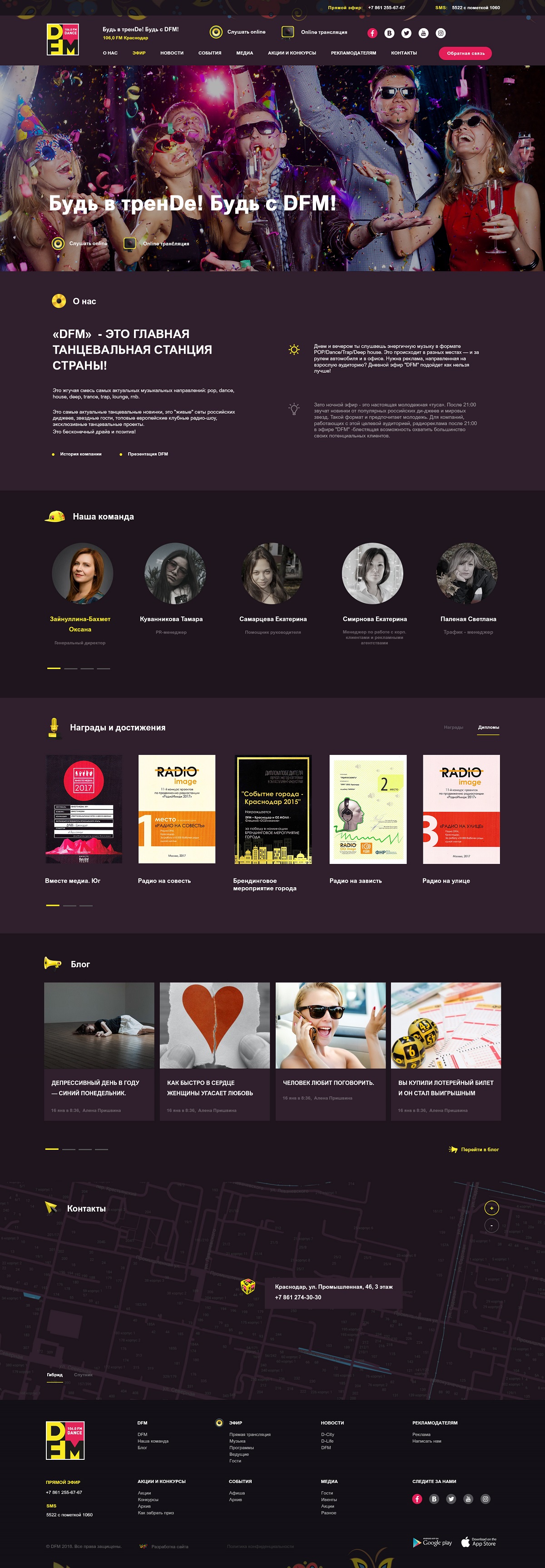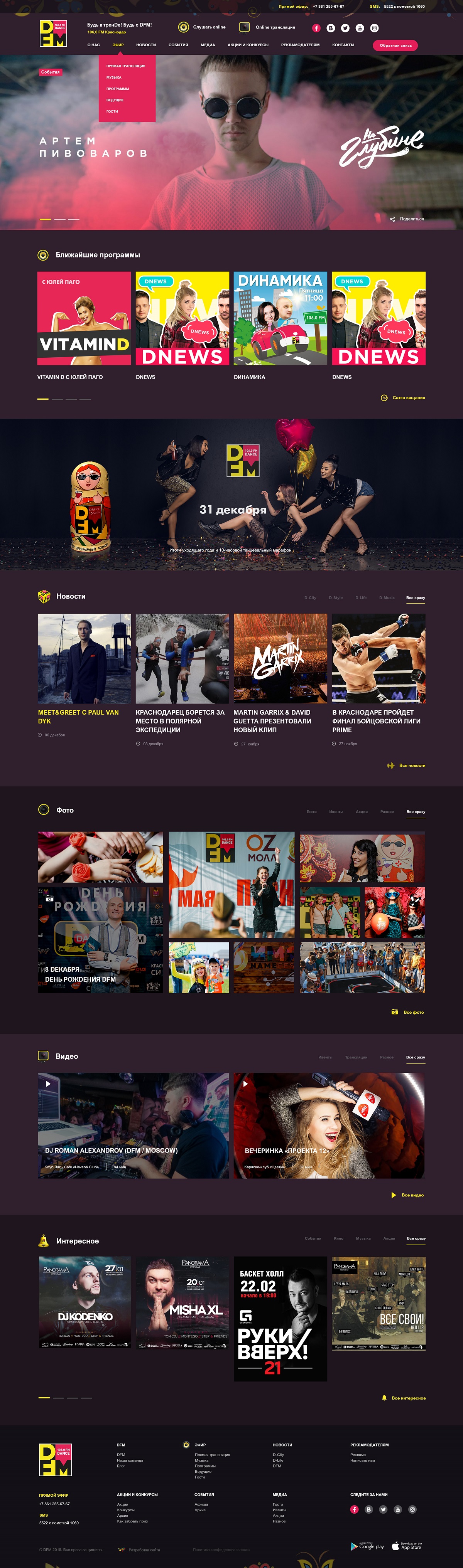 Дизайн этого проекта оказался наиболее длительным этапом. С обоих сторон к макетам было большое количество требований, преследовавших разные цели. Сайт краснодарской станции DFM не должен был выглядеть, как «дочерний» московскому, но в то же время, должен был нести в себе узнаваемый стиль DFM. Сайт должен создавать настроение, соответствующее тому, которое он получает при прослушивании радио.