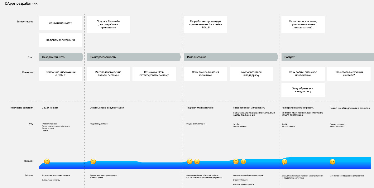 Каждый хороший проект начинается с исследования. Вот и наша команда перед началом работ провела полноценный анализ блокчейн индустрии, в хоте которого были построены CustDev (Customer Development) и CJM схемы.
