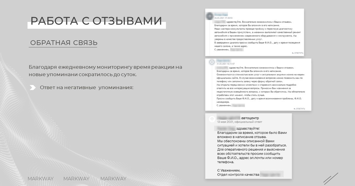 Мониторинг действительно помог услышать все, что пишут автовладельцы каждый день. Так легче реагировать на негатив и понять, что не так в общении с менеджерами. Политика коммуникации, переработанная вместе с Markway, построила прямой мостик между центром и пользователями в сети.