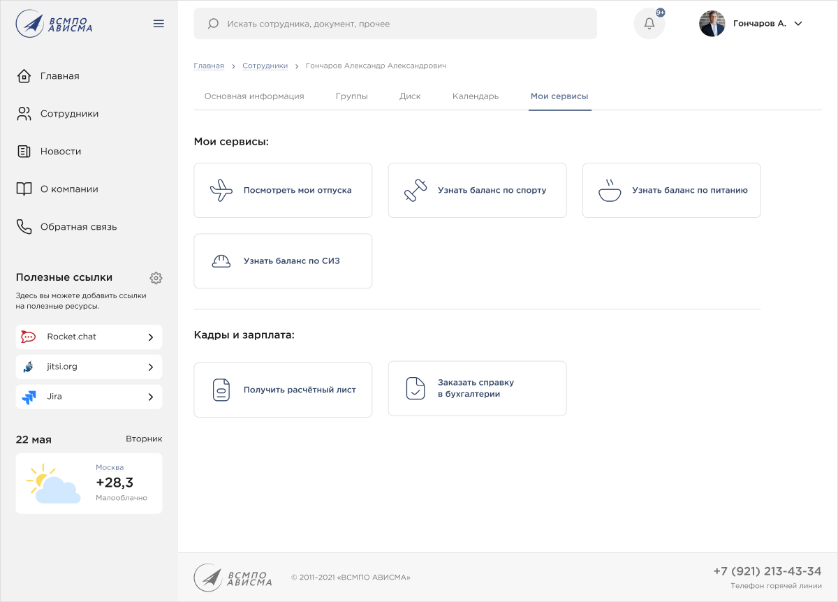 В разделе «Мои сервисы» сотрудники Корпорации могут самостоятельно решить различные кадровые вопросы.