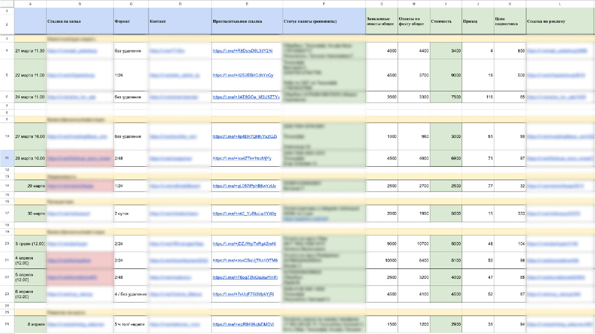 Ремарка: в каждый рекламный пост мы зашиваем пригласительную ссылку, чтобы отслеживать уникальный приход/уход подписчиков по каждому каналу, и чтобы было прозрачно понятно, к каким каналам можно будет вернуться через 4-6 месяцев.