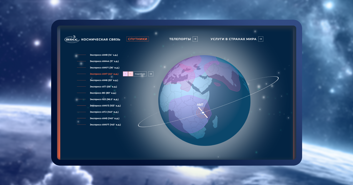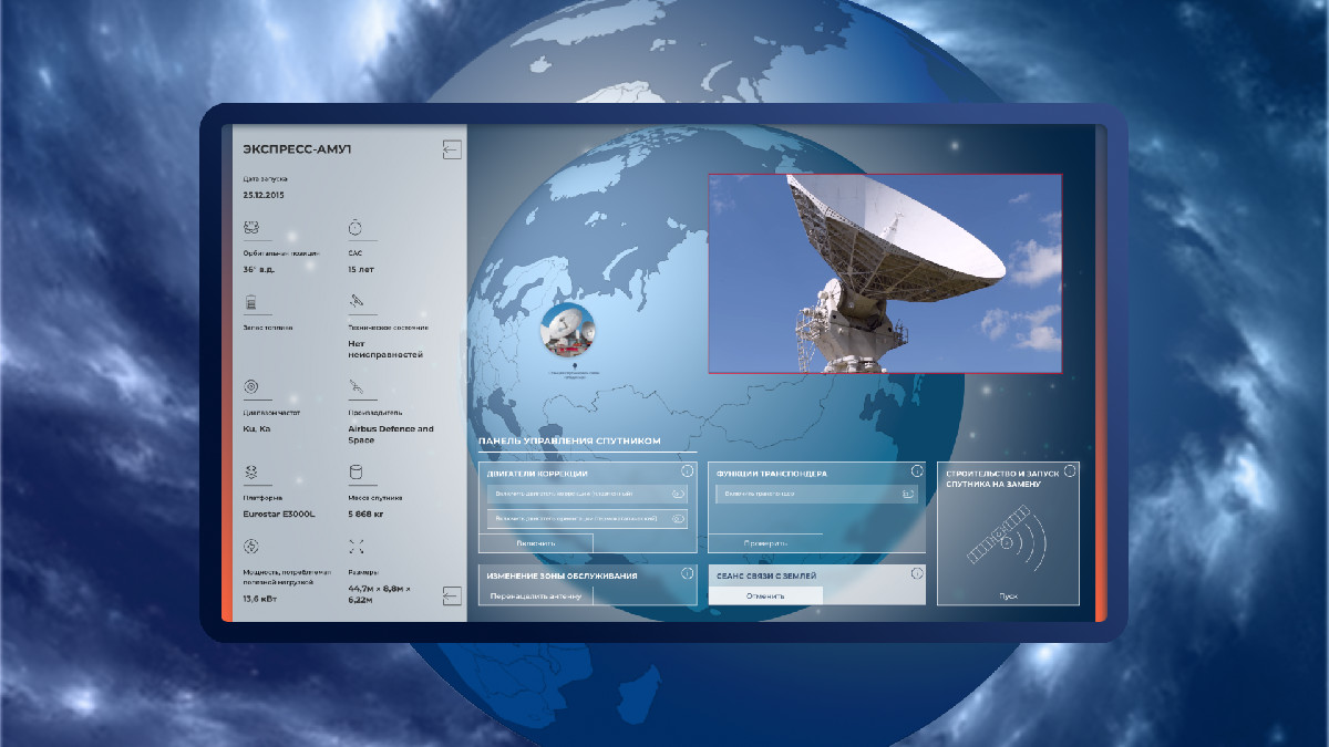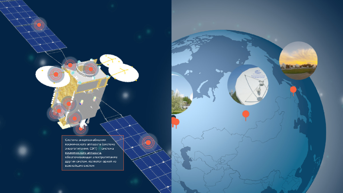 Значительное отличие от сайта — наличие нового интерактивного функционала. На базе уже готовых 3D-моделей спутников и земного шара мы разработали дополнительные интерфейсы для новых пользовательских задач.
