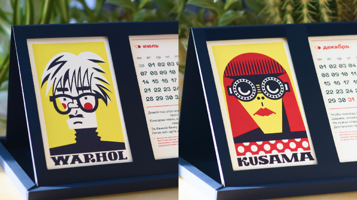 Для календаря мы отобрали персонажей с наиболее характерной внешностью и интересной легендой, все они представляют самую широкую палитру дизайнерского мастерства — от фотографии и промдизайна до архитектуры и плакатного искусства.