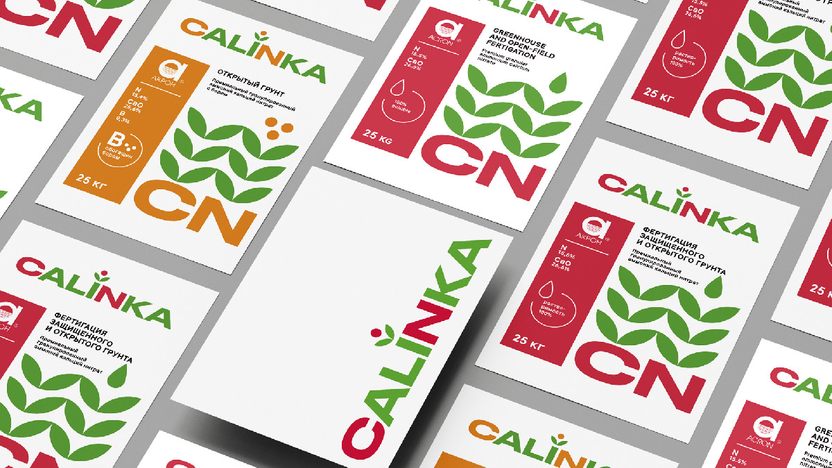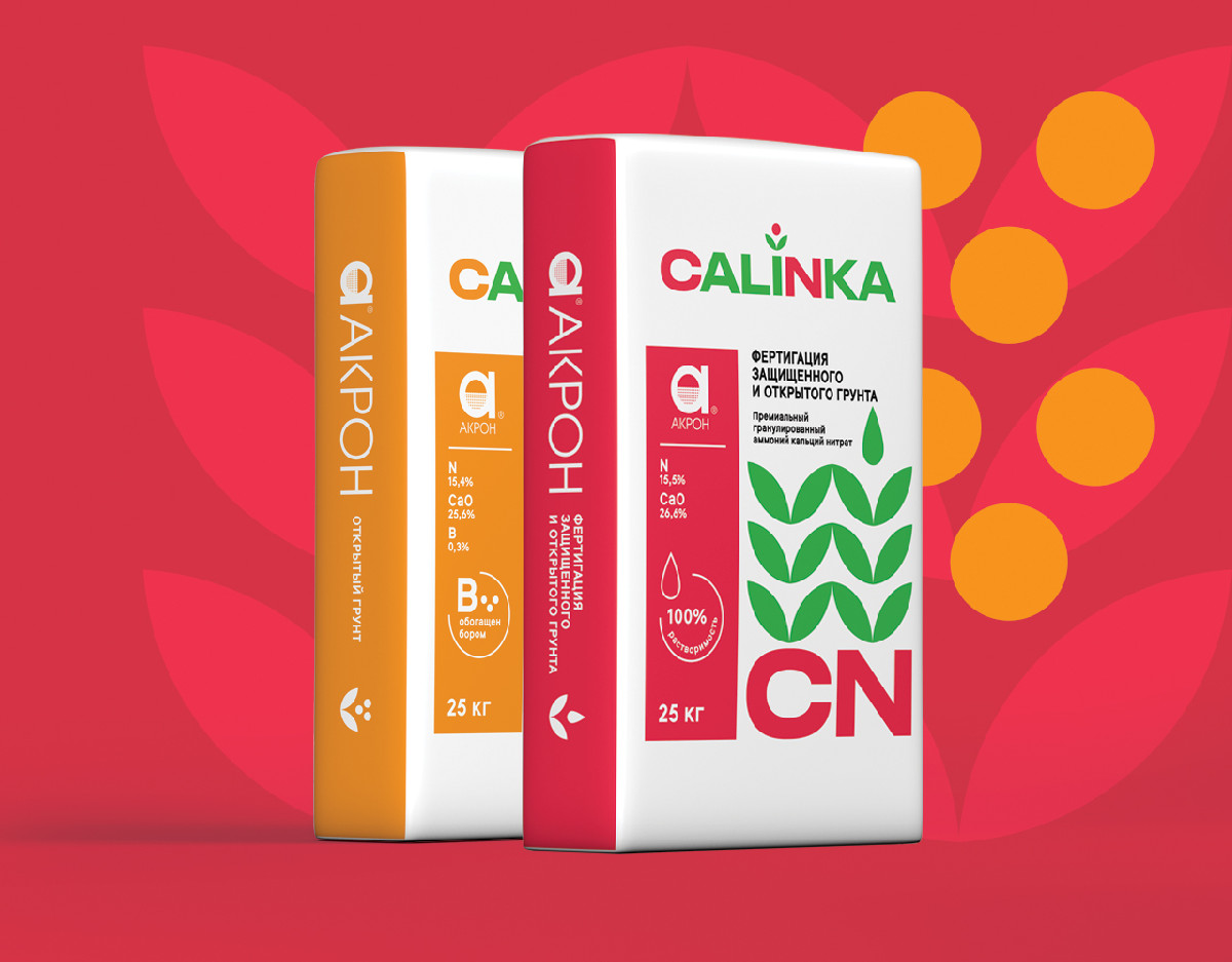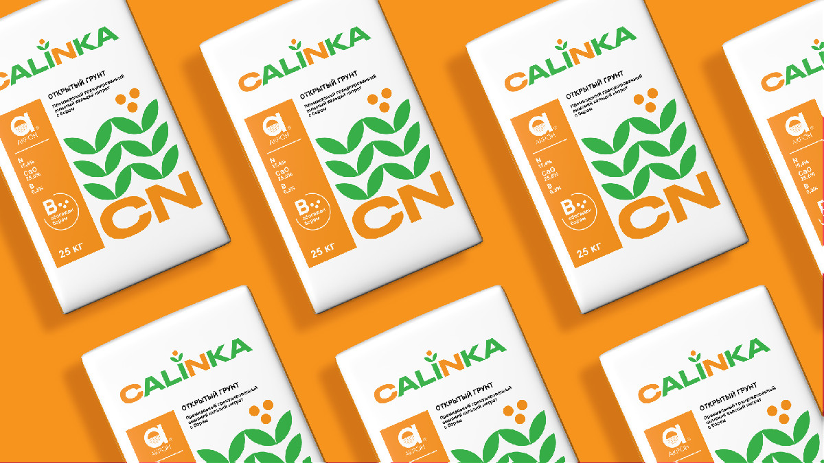 Логотип и упаковка новой премиальной марки минеральных удобрений Calinka компании «Акрон». Марка предназначена для международного рынка. Поэтому логотип и дизайн мешков не только отражают её российское происхождение, но также демонстрируют яркий и современный характер нового премиального бренда.