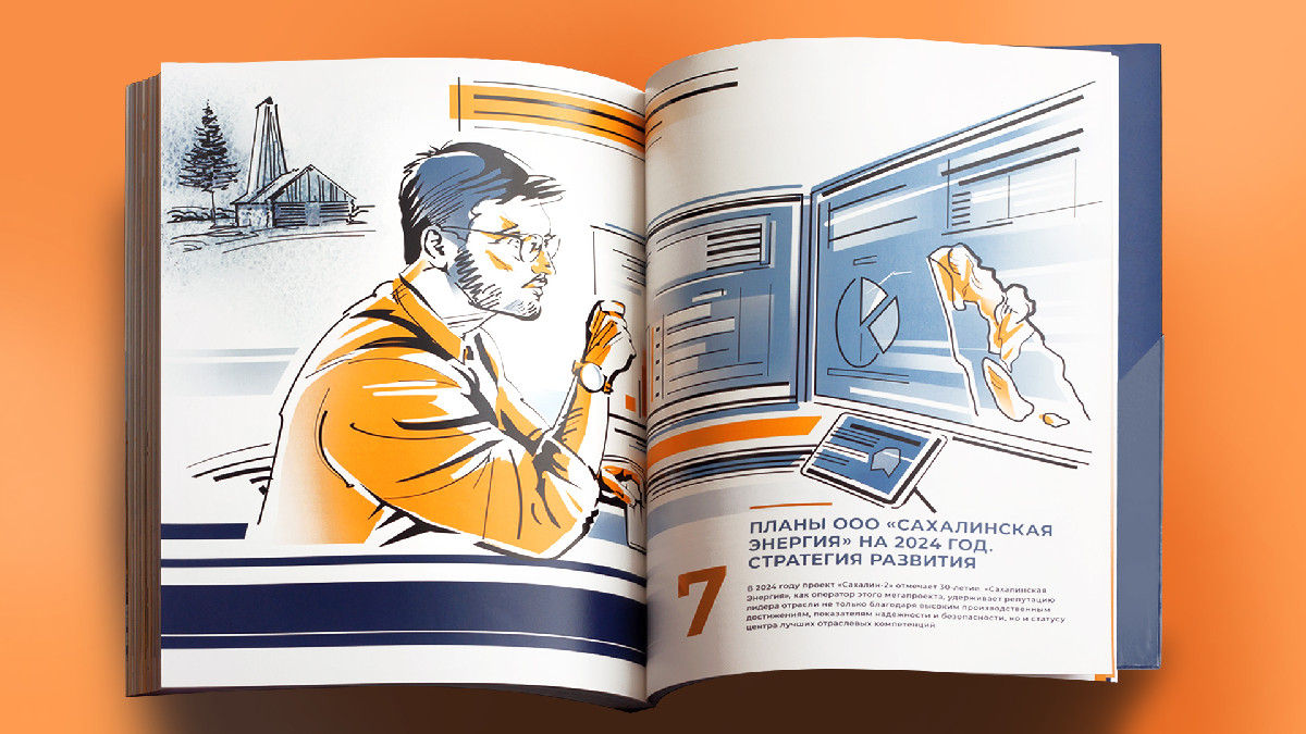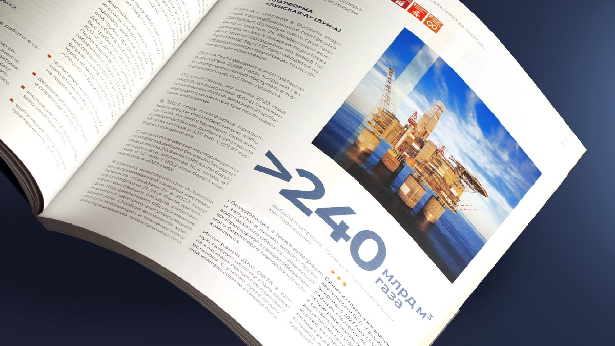 Юбилейный отчёт «Сахалинской Энергии» — результат многолетнего сотрудничества компании и агентства «ДизайнДепо». Сотрудничества, основанного на полном доверии, творческом взаимопонимании и большом обоюдном профессиональном опыте.