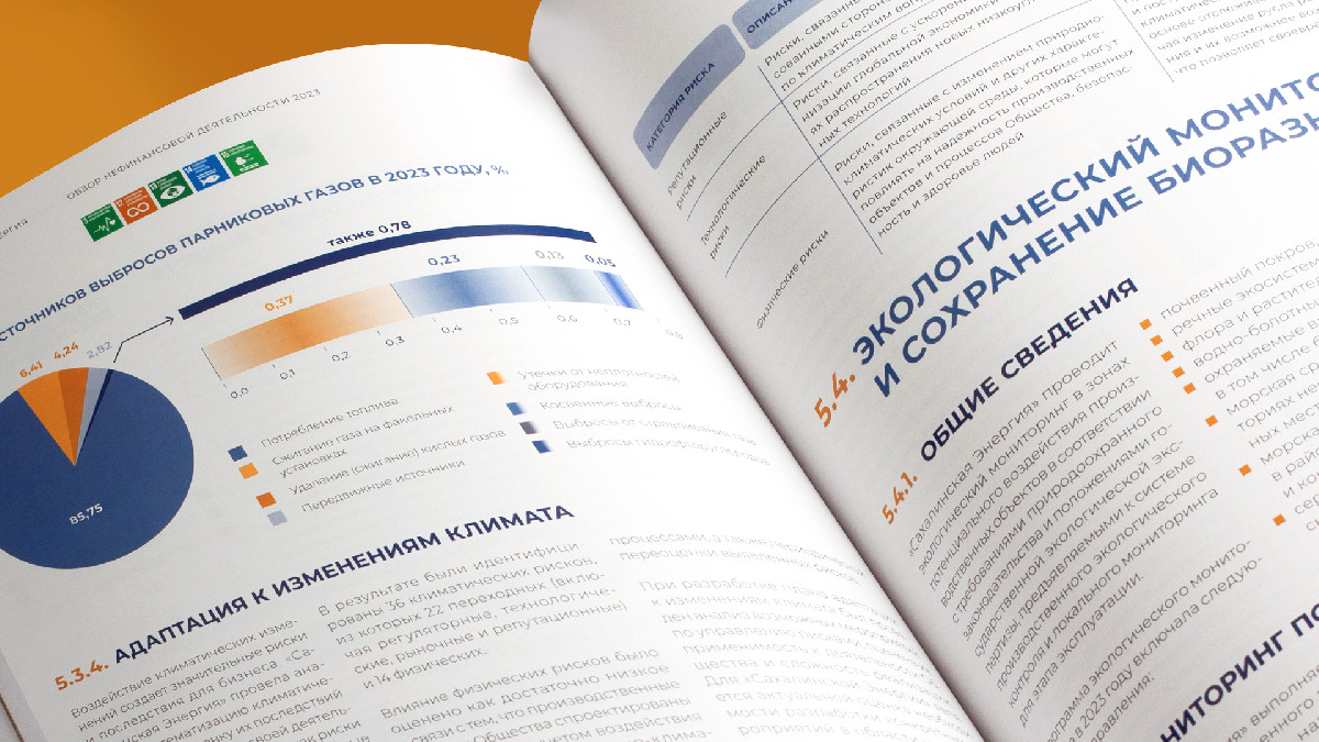 «Сахалинская энергия» — крупная российская нефтегазодобывающая компания, занимающаяся разработкой шельфовых месторождений в Охотском море. Для «Сахалинской энергии» мы разработали концептуальный дизайн юбилейного ESG-отчёта.