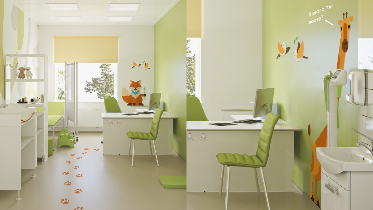 Для того, чтобы развести потоки посетителей с разными запросами (дети, взрослые, инфицированные больные, платные клиенты, сотрудники, пришедшие на регулярный профосмотр и т.д.), необходимо было создать понятную и наглядную систему навигации.