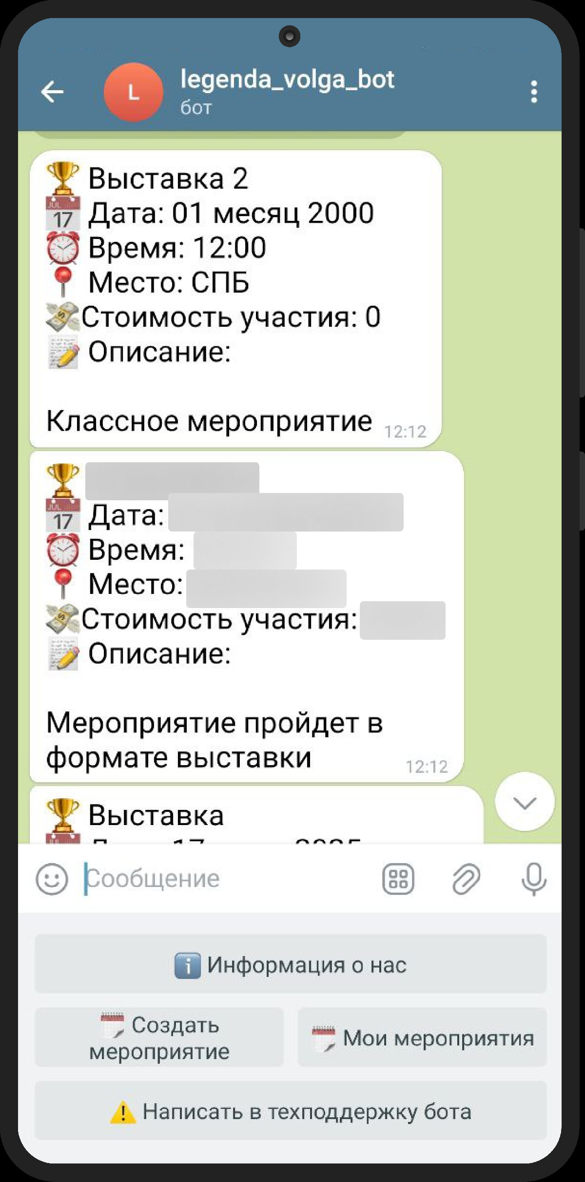 Наш Telegram-бот, помогает проводить и посещать события не только для владельцев и любителей домашних питомцев, а также события в других сферах: семинары, конференции и пр.