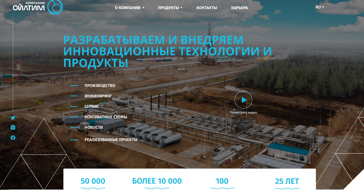 Создать современный корпоративный сайт для компании, специализирующейся на поставках оборудования и предоставлении сервисных услуг для нефтегазового сектора. Сайт должен эффективно представлять продукцию, демонстрировать компетенции компании и обеспечивать простой контакт с клиентами.