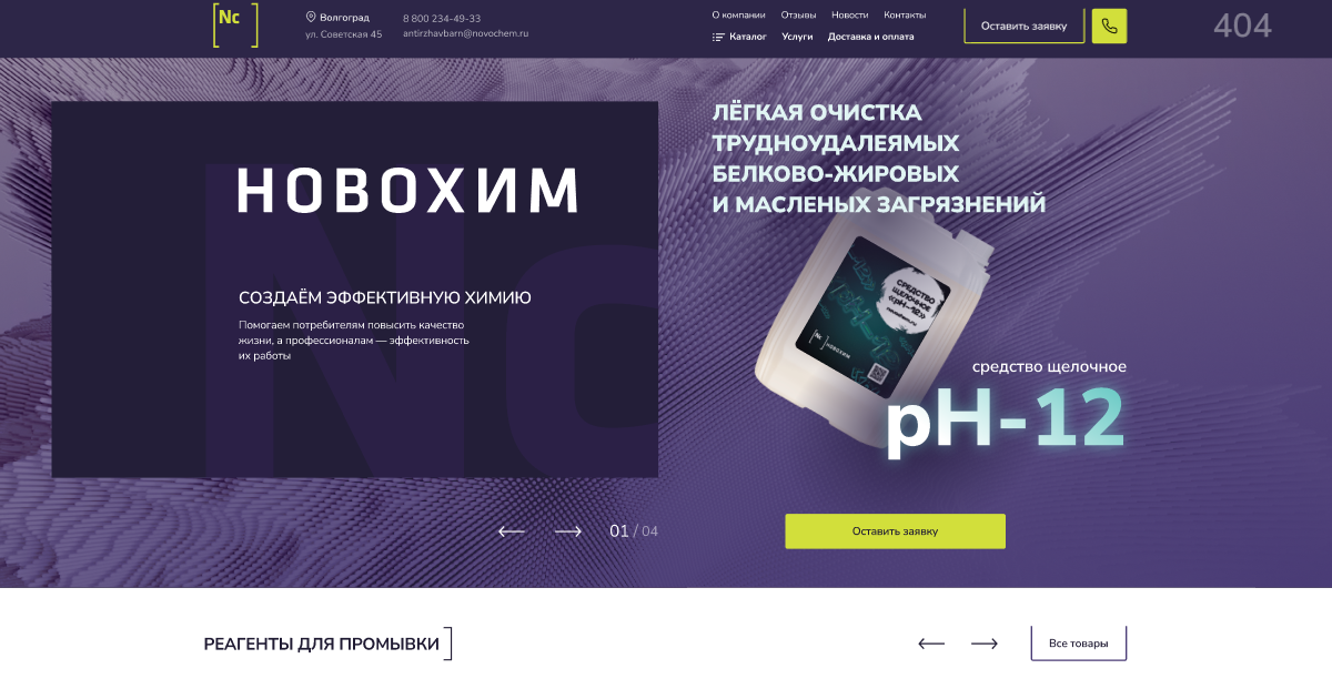 Сайт стал эффективным инструментом маркетинга и продаж для компании НовоХим, объединяя информативность, удобство и визуальную привлекательность. Платформа помогает привлекать новых клиентов, укреплять доверие и демонстрировать экспертизу компании в сфере химической продукции.