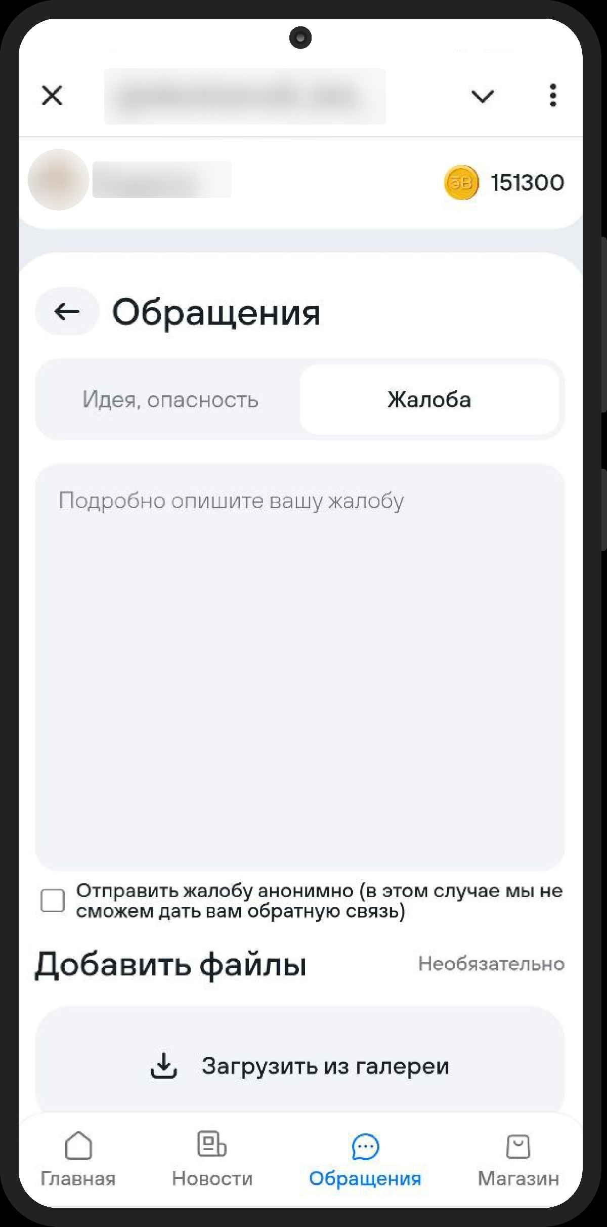 - Подача жалоб и предложений (анонимные, с загрузкой файлов)