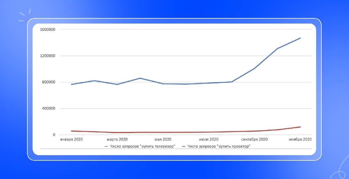 На рынке происходила незаметная, но важная трансформация: китайские проекторы начали выигрывать у традиционных брендов (Sony, Epson) за счёт удобства. Они стали мультимедийными: со встроенными колонками, Android TV, LED-лампами. Но об этом мало кто знал. Люди продолжали искать телевизоры, а не альтернативы. SEO-запросов на проекторы почти не было. Реклама не справлялась. А клиент хотел кратный рост.