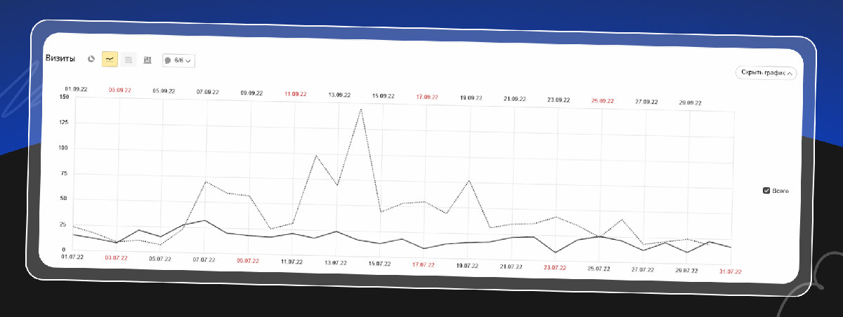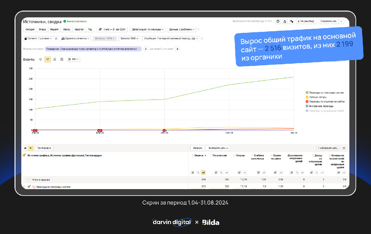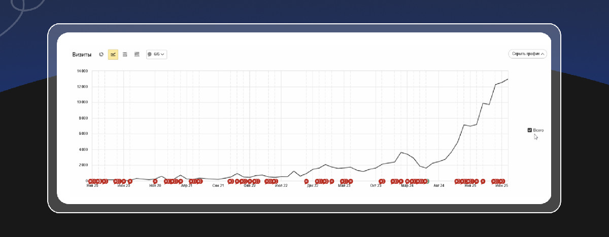 Полная динамика роста всего трафика на сайт с момента начала сотрудничества