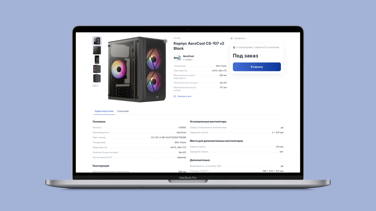 - Адаптивные фильтры — в каждом разделе отображаются только релевантные параметры (например, для серверных комплектующих — объём RAM, тип процессора).