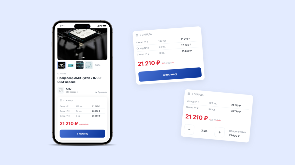- Система поддерживает отображение товаров с разных складов, включая собственные и партнёрские.