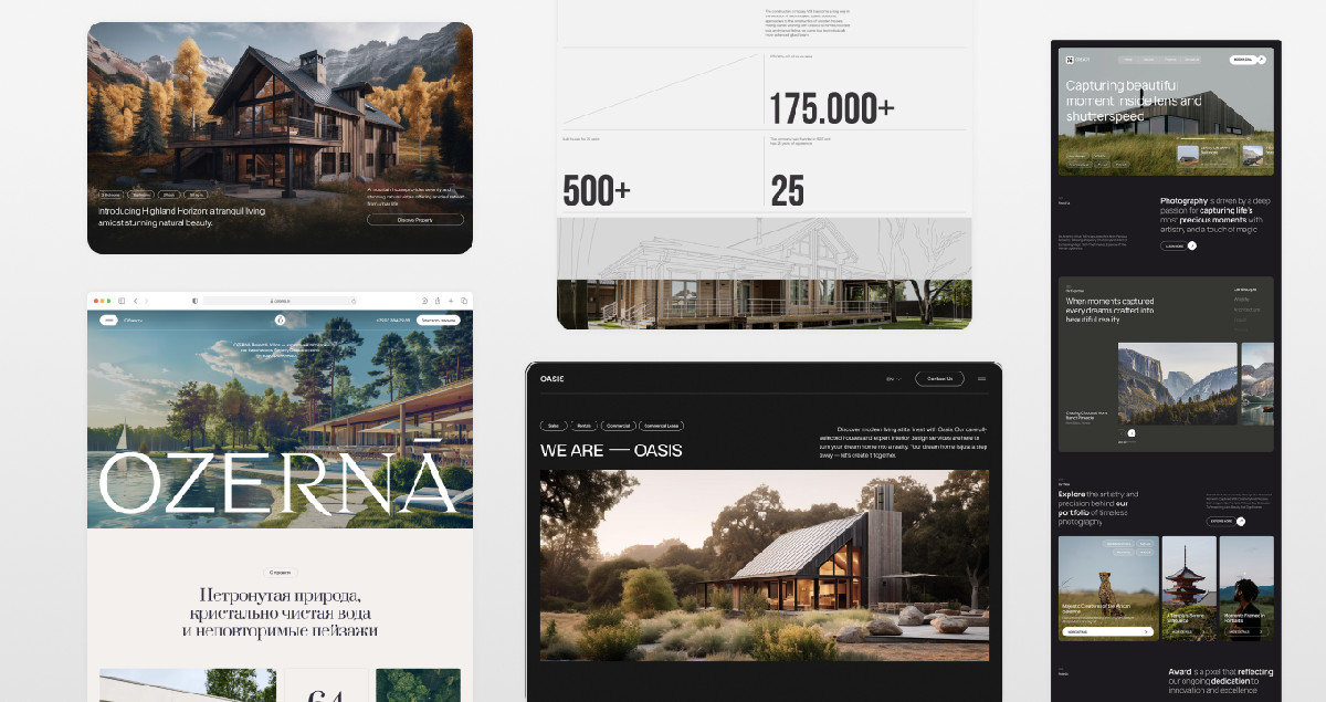 Разработали минималистичный и светлый дизайн, где главный акцент — фотографии домов. Такой визуал подчеркивает масштаб и эстетику проектов, создавая у посетителя ощущение доверия и комфорта.