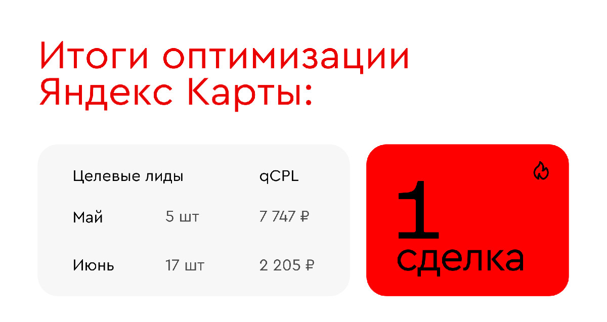 Этот кейс доказывает, что даже при уже налаженной системе продвижения можно найти дополнительные точки роста через оптимизацию существующих инструментов. Работа с геосервисами позволила снизить CPL в 3,5 раза, увеличить показы и переходы на 29% и получить реальную сделку. Главный урок: не ищите новые каналы, когда можно глубоко проработать уже имеющиеся. Геосервисы — недооцененный источник качественных лидов, который дает результат без увеличения маркетингового бюджета.