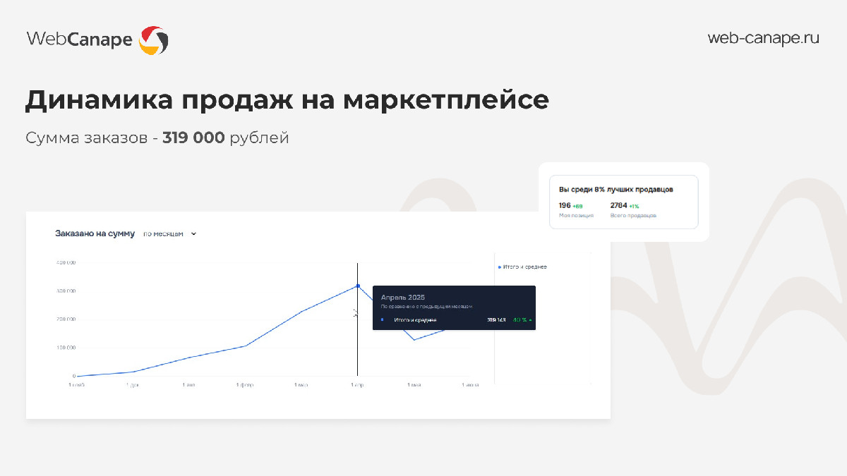 Параллельно клиентка развивала внешние каналы: вела Telegram-канал, размещала статьи в Дзене со ссылками на карточки товаров. Мы синхронизировали рекламную активность с выходом ее контента: запускали продвижение карточек именно в те периоды, когда шли охватные публикации. И это дало синергетический эффект — показы, клики и заказы начали уверенно расти.