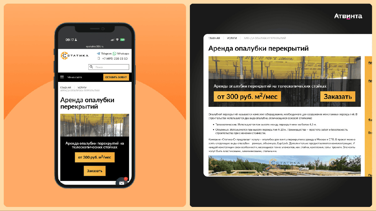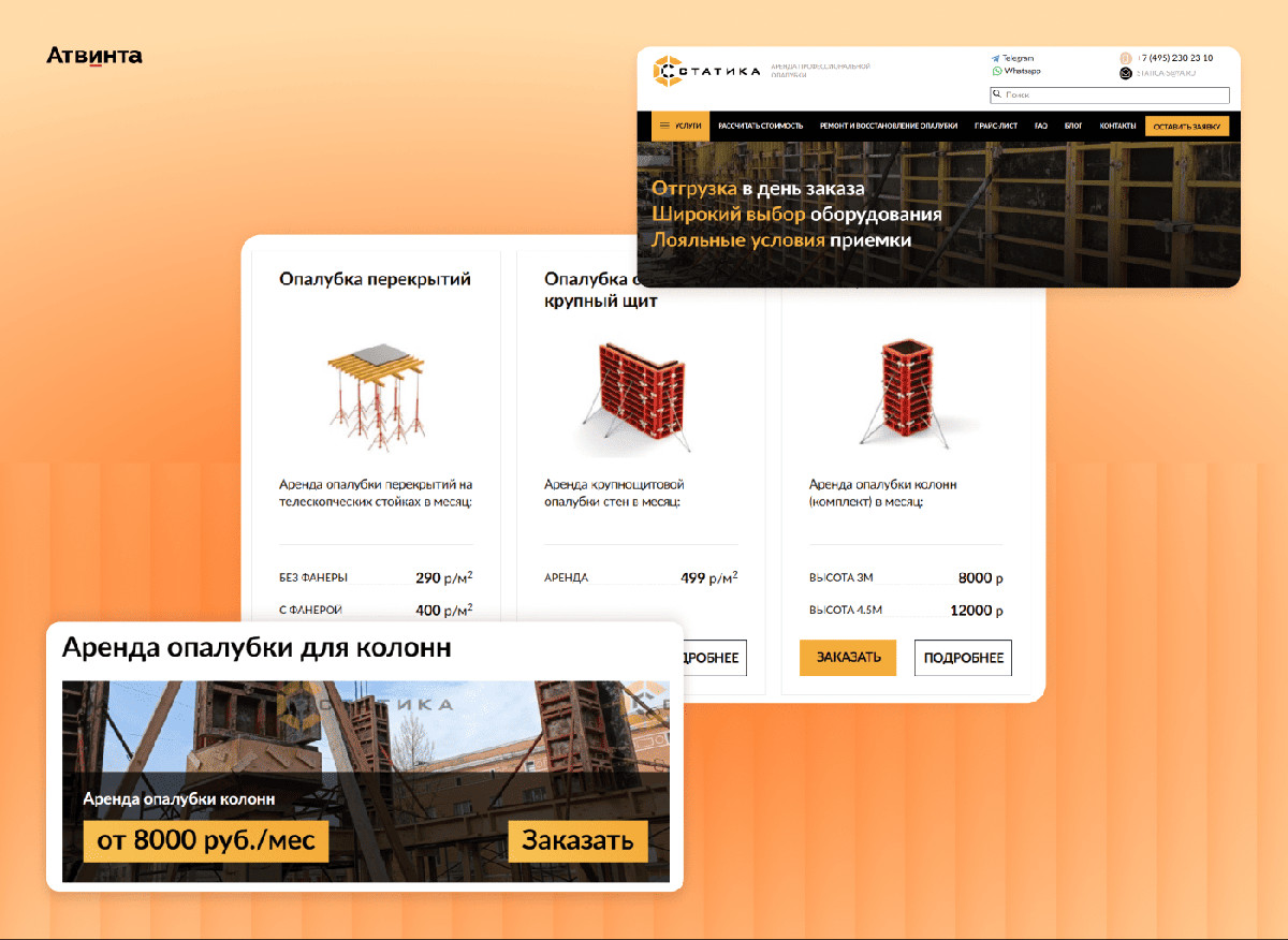 Учли сезонность спроса в строительной сфере. Зимой интерес к стандартной опалубке снижается, зато растет потребность в специфических решениях — станциях прогрева, ЗУС и других. Под каждый такой сегмент запустили отдельные кампании с адаптированными посадочными страницами и текстами объявлений. Это позволило сохранить стабильный поток лидов даже в межсезонье.